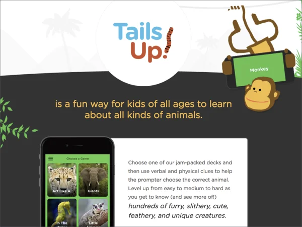 The Association of Zoos & Aquariums (AZA) is the nonprofit group that accredits the largest zoos and aquariums in the United States to support conservation and education. AZA was looking for a fun way to share their conservation message with children and parents alike. After a rigorous strategy session at their office in Washington, DC, we decided to create a whimsical, cheeky mobile game called Tails Up! in which players try to guess the name of animals based on a pictures of their butts (I said it was cheeky!). Working with the Little House agency, I co-lead the strategy, lead production and provided copywriting for the app and associated website.